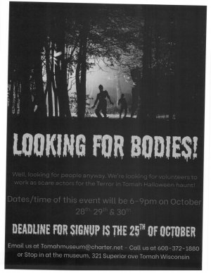 October 28-30: Halloween "Tomah Terror" Event. (Please watch for Further announcements)